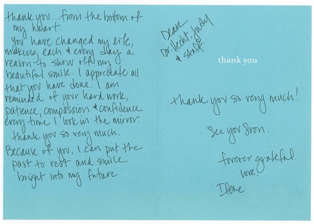 To all the wonderful people in the world, I don’t know where to begin to thank you all for your kindness and caring so much about my situation. I came into your office in tears and left with a smile. You were all there for me week after week reassuring me that everything would be ok and it was more than ok.
